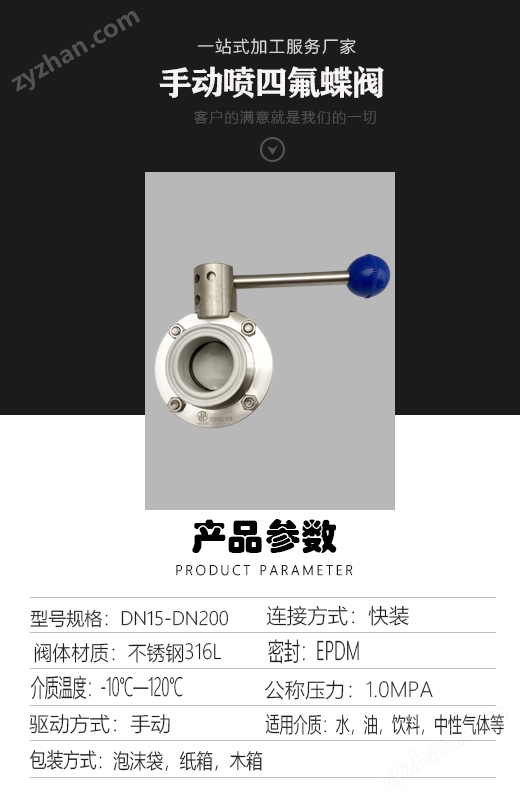 不銹鋼手動快裝噴四氟蝶閥耐腐蝕卡箍蝶閥“衛(wèi)生級噴四氟蝶閥”用于衛(wèi)生級(如食品、制藥、生物工程等潔凈要求高)工況的襯四氟或全氟醚(PFA)蝶閥?,其核心特征在于?耐腐蝕、易清潔、符合衛(wèi)生標準?。