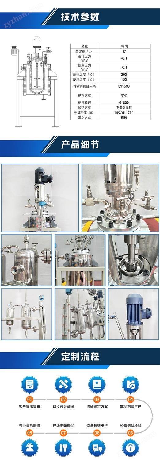 不銹鋼減壓磁力蒸餾反應(yīng)釜 - 非標(biāo)定制參數(shù)