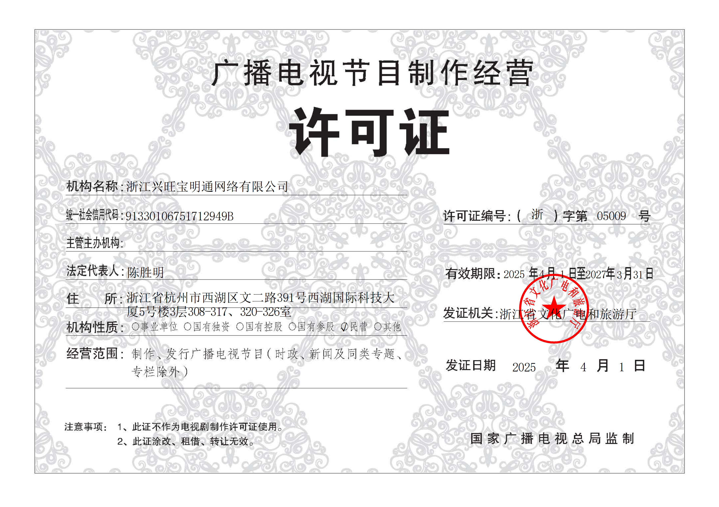 廣播電視節(jié)目經(jīng)營許可證
